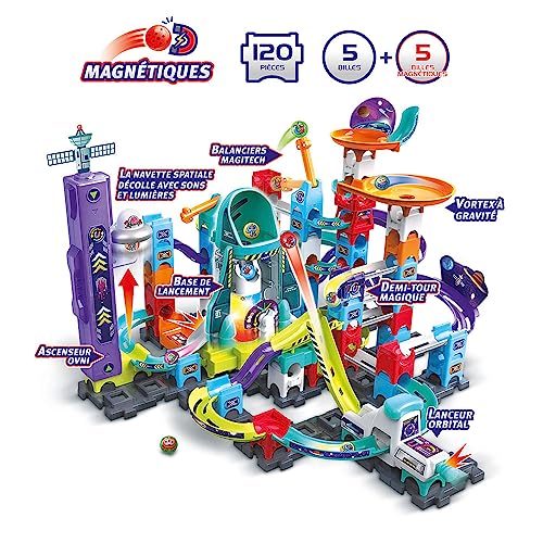 VTech - Marble Rush, Circuito a Sfere Elettronico Space Magnetic Mission Set XL300E, Gioco di Costruzione Magnetico, 120 Pezzi, 10 Palle, Regalo Bambino Da 4 Anni - Contenuto in Italiano