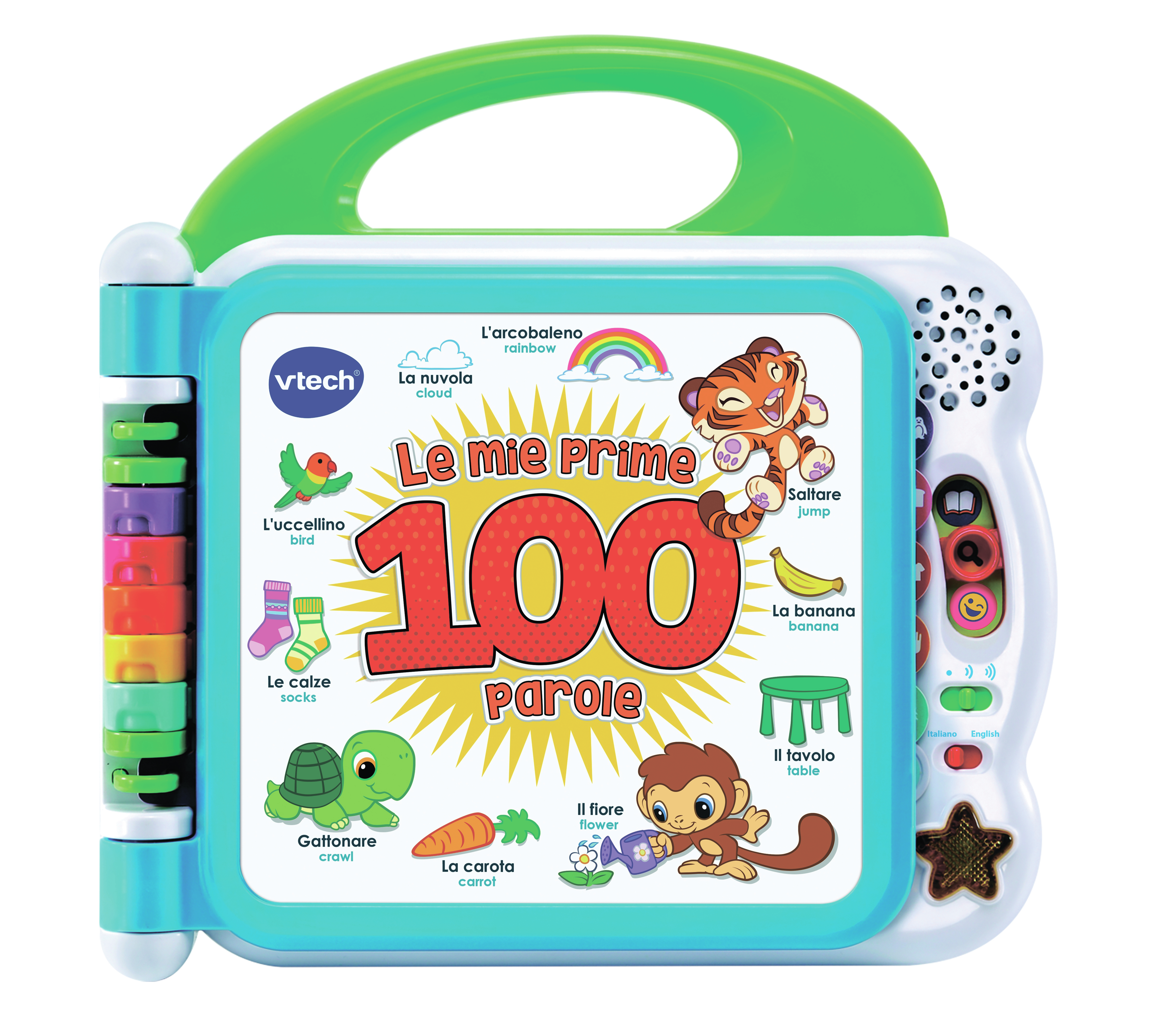Un magico libro parlante, interattivo e bilingue per imparare le prime 100 parole del vocabolario in italiano e inglese.