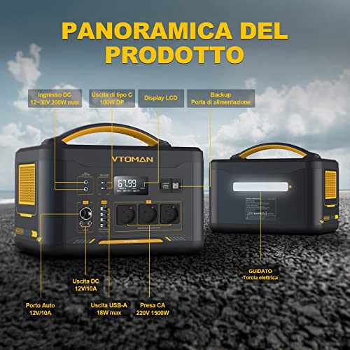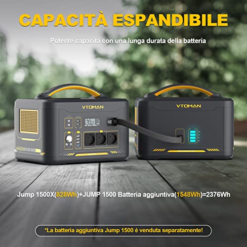 VTOMAN Jump 1500X Power Station con batteria extra, 1500 W/2376 Wh, lunga durata LiFePO4 con potenza continua da 1500 W, regolamentata 12 V DC, PD 100 W Type-C per Home Backup RV, campeggio, Blackout