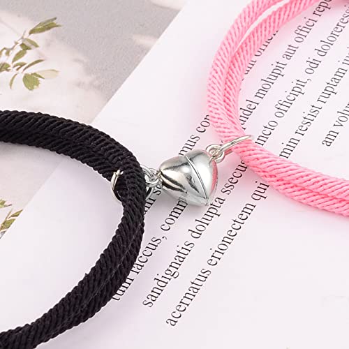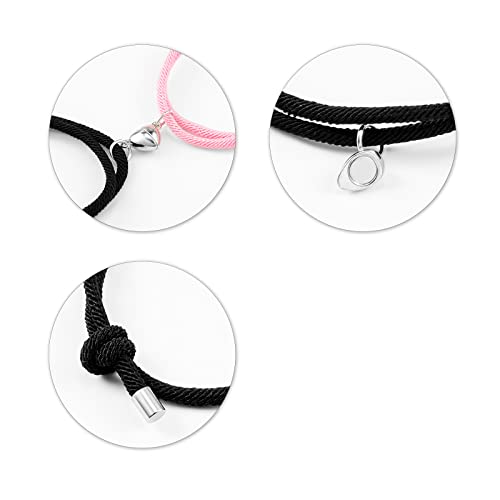 VU100 2 pezzi Bracciale magnetico da per coppia Attrazione magnetica, Bracciale amicizia intrecciato, regalo per l'amante Famiglia Migliore amica Fidanzata Madre Sorelle Rosa + Nero