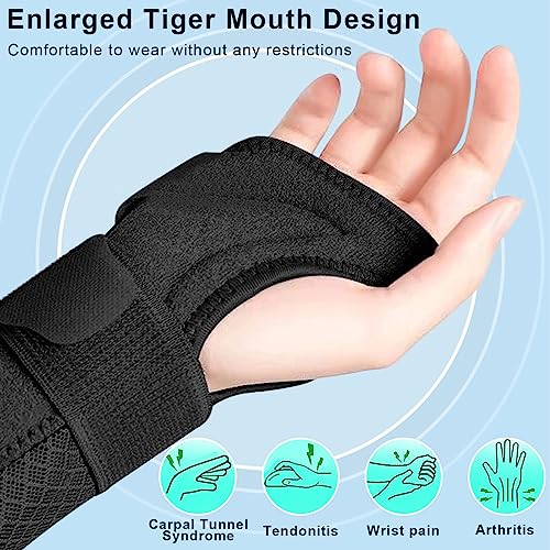 Vueinrg Tutore Polso Destro, Stecca per Polso Destro Traspirante, Tutore Polso Tunnel Carpale Alleviare il Dolore da Sindrome del Tunnel Carpale Slogature o Artrite (M, Nero Destra)