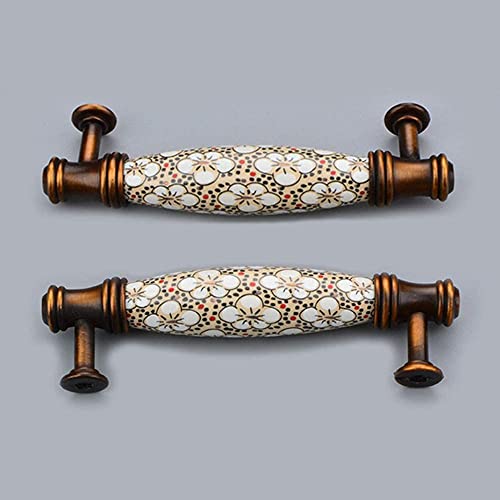 Vulevirtue 2 Pezzi Maniglia Ceramica Floreale, Vintage Pomelli per Mobili della Cucina Armadio Cassetto Pomelli per Mobili Porta Manopole in Lega di Zinco e Ceramica 96 mm