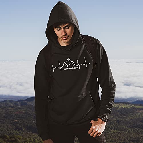 Vulfire Felpa con Cappuccio Unisex La Montagna nel Cuore. Idea Regalo per Chi AMA la Montagna. Felpa Montagna. Abbigliamento Montagna (XXL, Nero)