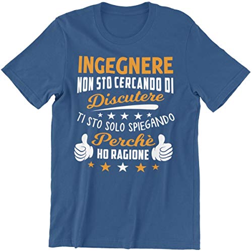 Questa fantastica e divertente maglietta ingegneri con su scritto "Ingegnere, non sto cercando di discutere ti sto solo spiegando perchè ho ragione" è fatta apposta per tutti gli ingegneri. Se anche tu ti ritrovi in questa descrizione questa t shirt divertente è perfetta. Può essere indossata in qualsiasi circostanza, è una simpatica idea regalo, per scherzi laurea, scherzi divertenti ingegneria, regali addio al nubilato, celibato, laurea uomo ingegneria civile, maglia ingegneri divertente