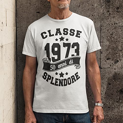 Fantastica t-shirt con stampa divertente per gli uomini nati nel 1973. Festeggia il tuo compleanno con questa fantastica maglietta con su scritto Classe 1973 50 anni di splendore. Questa maglia può essere indossata al cinquantesimo compleanno nel 2023 o in qualsiasi momento e qualsiasi anno, è una perfetta idea regalo