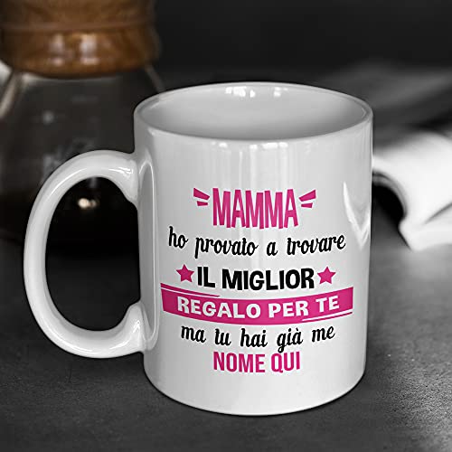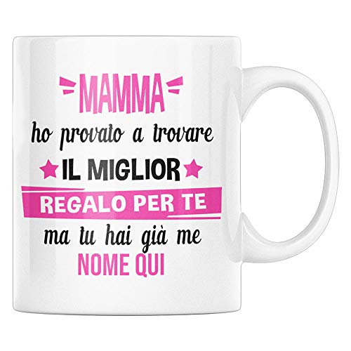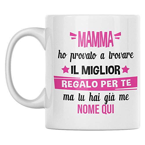 IDEA REGALO MAMMA: Questa tazza in ceramica personalizzabile è un'idea regalo donna utile per la mamma dal figlio o dalla figlia. É perfetta e simpatica se sei in cerca di idee regali per lei originali e simpatiche per la festa della mamma, per natale, per compleanno, per anniversario, per matrimonio, per festa di laurea, per Halloween, per battesimo, per addio al celibato o addio al nubilato, o qualsiasi altro evento.