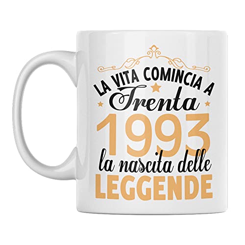 Fantastica tazza di compleanno per i nati nel 1993. Festeggia il tuo compleanno con questa fantastica tazza con su scritto 1993 La vita comincia a trenta la nascita delle leggende. Questa tazza latte può essere regalata al trentesimo compleanno nel 2023 o in qualsiasi momento e qualsiasi anno, è una perfetta idea regalo