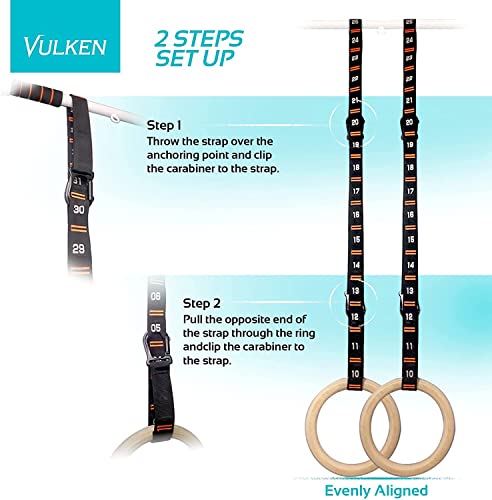 Vulken Cinghie numerate regolabili per anelli da ginnastica Moschettoni in acciaio Sistema di aggancio rapido Facile da configurare solo una coppia di cinghie