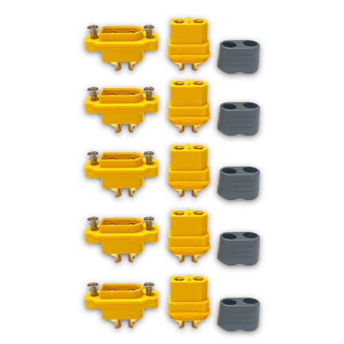 5 paia di connettori originali Premium XT60 XT60E XT60E-M da incasso con viti a esagono incassato maschio femmina oro batteria Lipo ad alta potenza - Carico continuo fino a 60 A rendono questo adattatore davvero resistente - spina dorata salda, per una connessione sicura e superficie di contatto