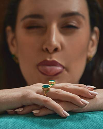 Vurmashop Anello con onice verde in oro 18 k da donna - Anello unico di design con pietra semipreziosa e placcato Oro, 13,5, colore: Verde, cod. R-0459