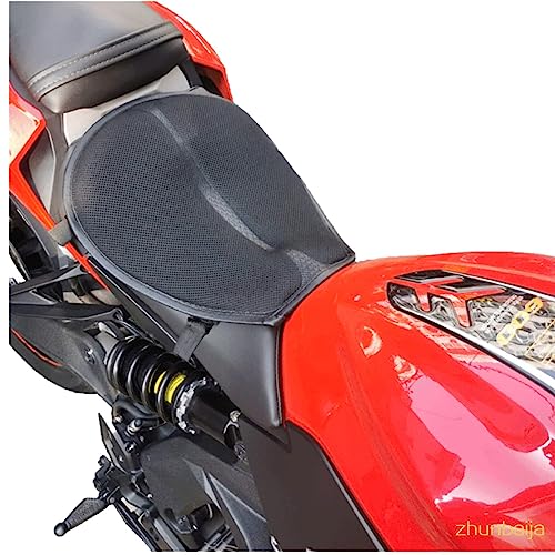 cuscino per sedile moto traspirante universale: il cuscino del sedile della moto è fissato con 2 cinghie avvolgenti e il fondo è progettato con tessuto antiscivolo per garantire una perfetta aderenza tra il cuscino del sedile e il sedile, adatto alla maggior parte delle moto
