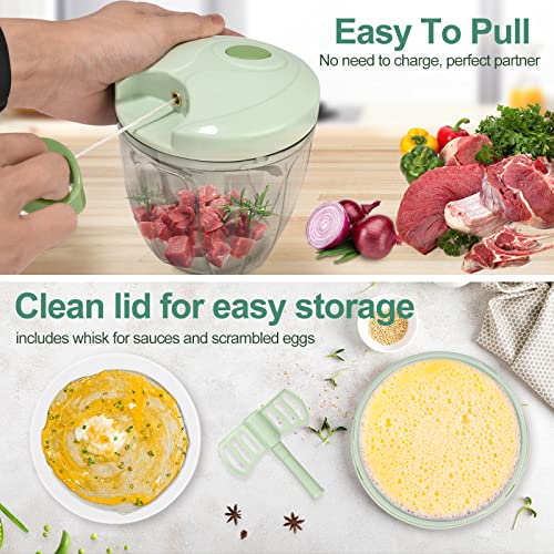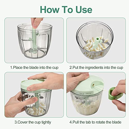 Vusddy Tritatutto Manuale,Tritatutto da Cucina,Mini Tritatutto con 3 Lame Acciaio Inox,Tritatutto per Verdure,Frutta,Cipolle,Noci,Aglio,Carote,Spezie (900ml)