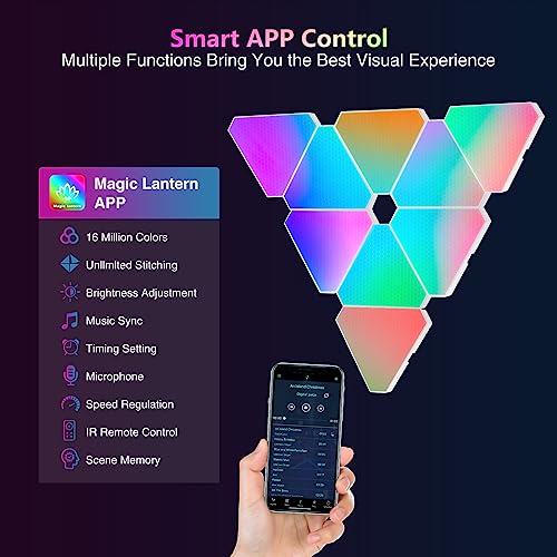 ✨ Controllo APP Intelligente: Goditi le funzioni di temporizzazione intuitive, i colori fai-da-te personalizzabili e gli effetti di luce e le modalità di musica e scena entusiaste. LED pannelli triangolari con queste caratteristiche, cambiare il modo in cui visualizzi dipinti, opere d'arte e immagini è più facile che mai