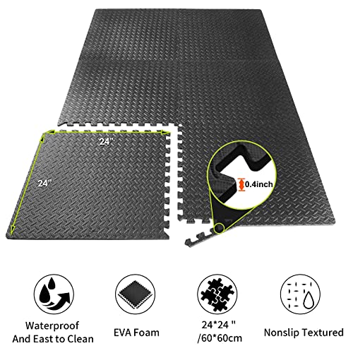 Vvindefs interblocco morbido tappeto di schiuma, sport Mat Eva Puzzle in gomma, casa allenamento tappetino in gomma antiscivolo, tappetino yoga, 24"X24" (60cmX60cm) Nero(Sconto Pack_24 Pezzi)