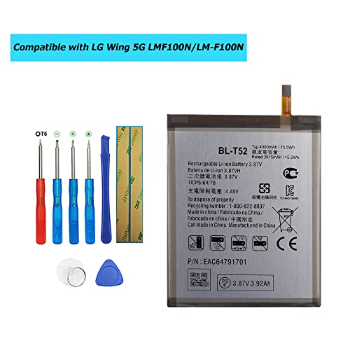 Vvsialeek BL-T52 Batteria compatibile per LG Wing 5G LMF100N LM-F100N LM-F100V LM-F100 con kit di attrezzi