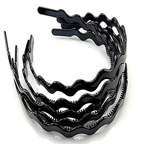 VVXXMO 5 PCS Uomo Donna Black Multi-Style Metal Plastic Hoop Capelli di plastica, fascia a spirale ondulata primavera, semplice fashion wash lavello copricapo