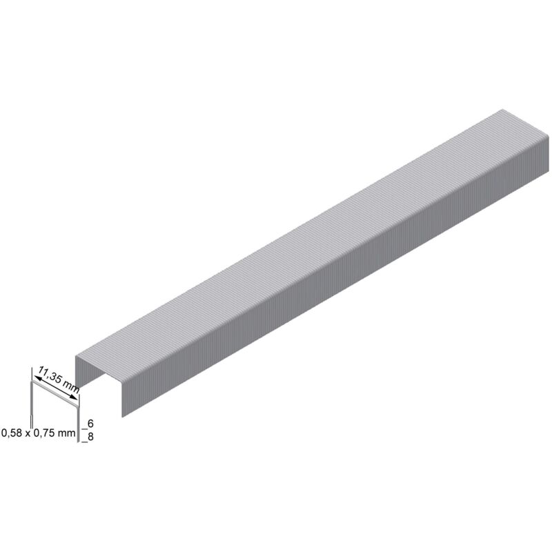 Dettagli tecnici Contenuto 6000 pz. Dimensione del prodotto, larghezza 11.3 mm Dimensione del prodotto, lunghezza 6 mm Dimensioni (L x L) 6 mm x 11.3 mm Materiale Acciaio Proprietà del materiale zincato Tipo prodotto Punti metallici Incluso nella consegna null Requisiti di sistema null