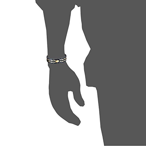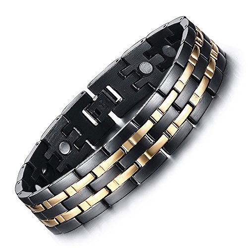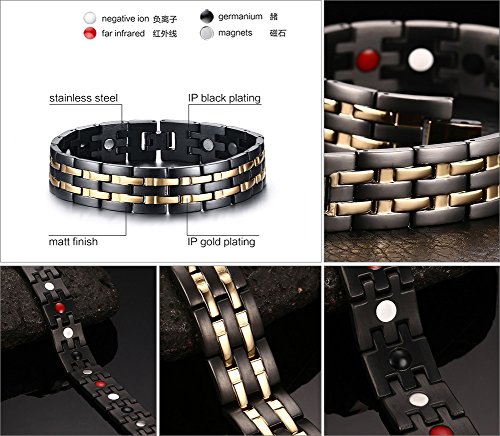 Vyaaa Uomo Acciaio Inossidabile 2 Oro Line 4 in 1 Bio Terapia Magnetica Wristband Nero 22.6cm Regolabile con Gratuito Gift Box