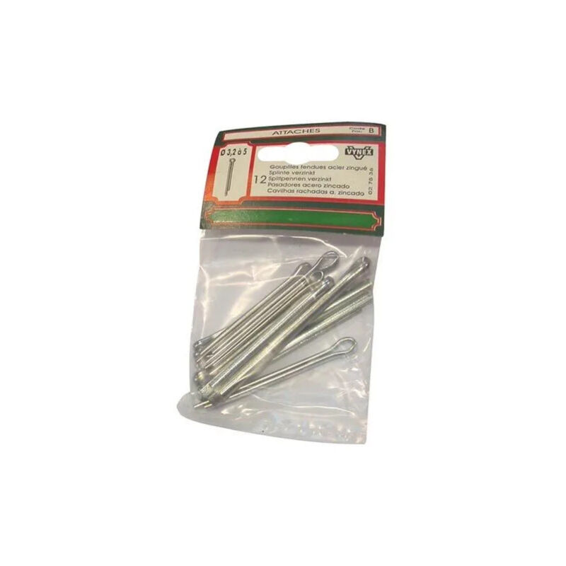 Perni spaccati assortiti diametro da 3,2 a 5 mm, 12 pezzi VYNEX codice 511444 Utilizzato come elemento meccanico e blocco temporaneo dell'asse. Resiste alla forza laterale. Montaggio/smontaggio facile e veloce. Nessun attrezzo richiesto.