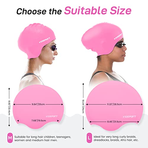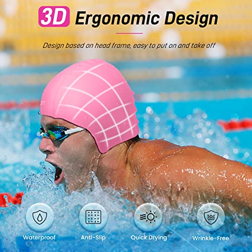 Vzzeport Cappello da Nuoto in Silicone, Cuffia da Nuoto con Stringinaso e Tappi per Orecchie, Cappello Unisex da Nuoto per Piscina, Protezione di Nuotata, Cuffia Piscina Uomo Donna, Taglia L, Rosa