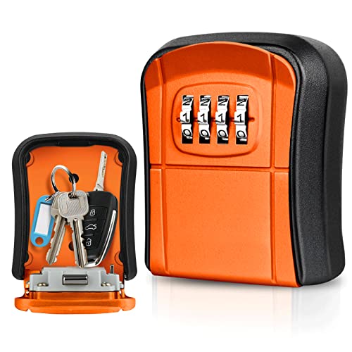 WACCET Cassetta di Sicurezza per Chiavi Montaggio a Parete Mini Cassaforte per Chiavi Esterno Interno Impermeabile Cassetta Chiavi Combinazione di 4 Cifre per Casa Garage Ufficio Fattoria (Arancione)