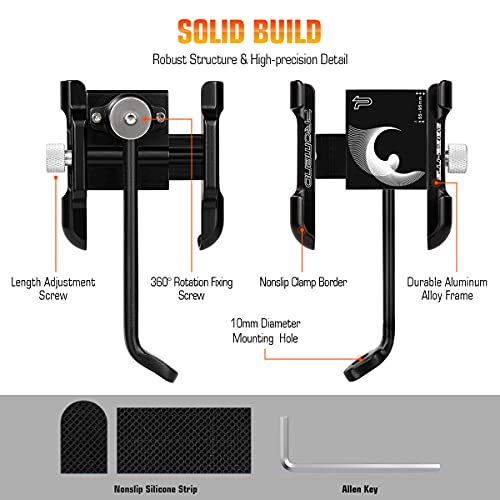 【Robusto e Resistente】Questo supporto cellulare moto è realizzato in lega di alluminio, è molto leggero e, rispetto alla normale plastica, è più robusto e durevole. La superficie è un trattamento di ossidazione anodica, Ha un aspetto liscio, non facile da sbiadire, più bella.