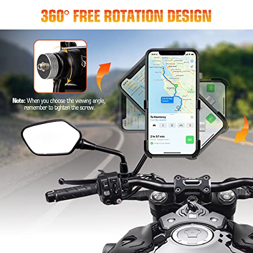 【360°Rotabile Angolo Regolabile】Il supporto smartphone moto può ruotare liberamente di 360 gradi, può essere fissato sia orizzontalmente che verticalmente. permettendoti di adattarti a qualsiasi angolazione desideri, per la migliore esperienza sportiva.
