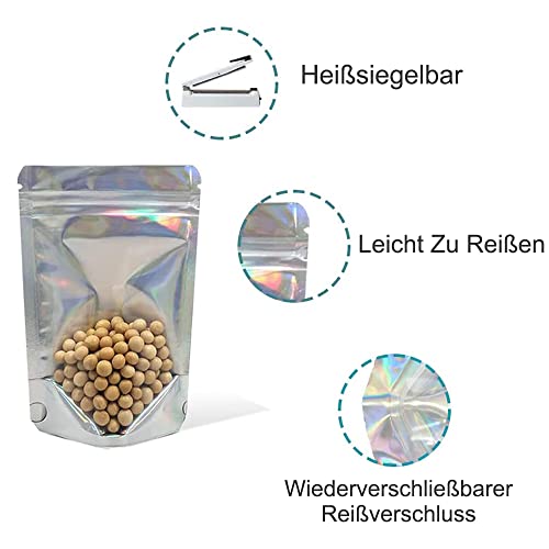 WACCOMT Pack 50 sacchetti trasparenti in Mylar Bags con chiusura lampo, sigilli a caldo, richiudibili, per alimenti, fogli di alluminio, sacchetti da 12x20cm (4,7 x 7,8 pollici)