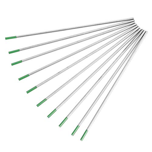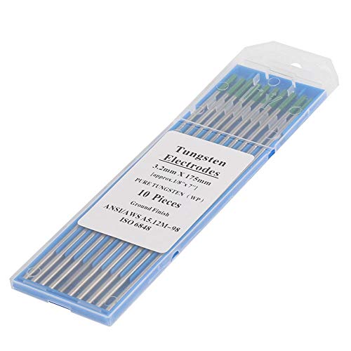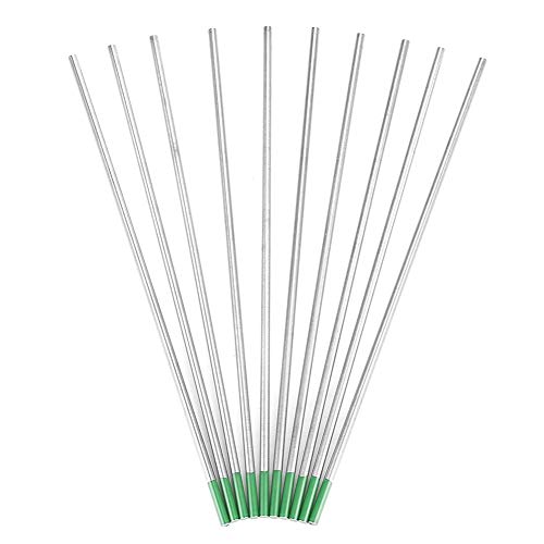 Wacent Elettrodi WP Green Tip 1.0/1.6/2.0/2.4/3.2mm, Parte Metallica Resistente 10Pcs Tungsteno Puro per Saldatura Tig AC(3.2mm*175mm)
