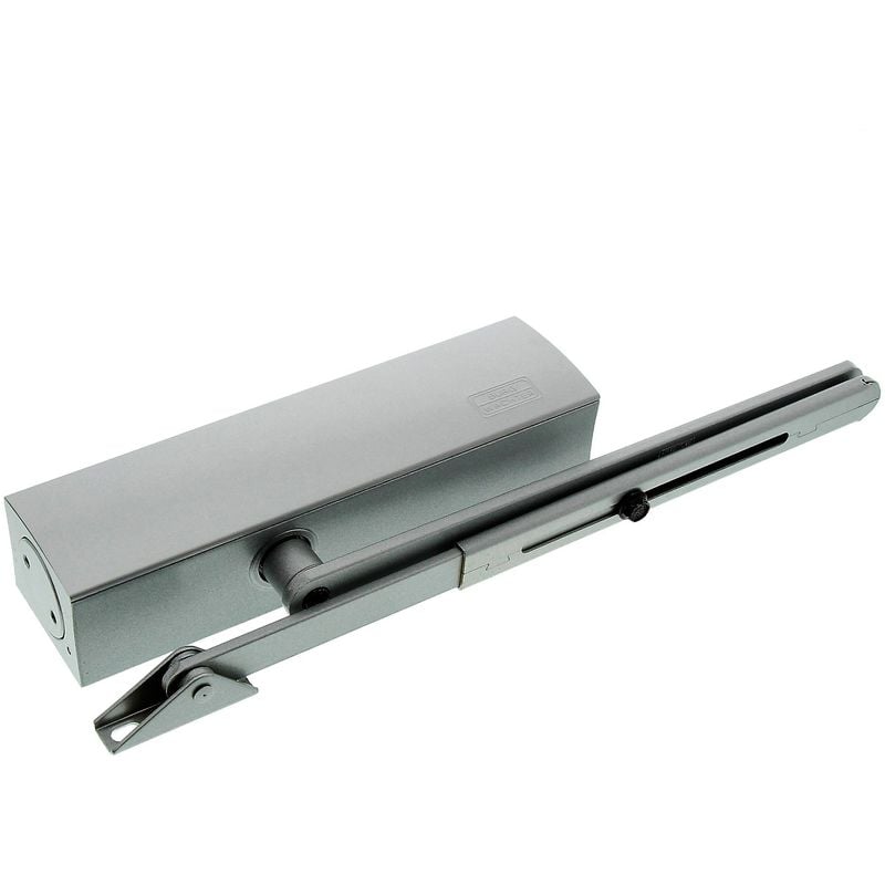 Idraulico, compatto chiudiporta nelle taglie 3/4 controllato per sicuro e selbsttätiges chiudere la porta Montaggio facile: anta apribile, marchio per bohlöcher, fissaggio alla porta mediante 4 viti Chiusura regolabile della forza grazie alla semplicemente umdrehen del cuscinetto gestänge Bocks Adatto per porte con spessore fino a 110 cm, serrature velocità e endschlag regolabile Contenuto della confezione: burg-wächter chiudiporta, TS 1500 S SB, AxLxP: 50 x 177 x 40 mm, colore: argento