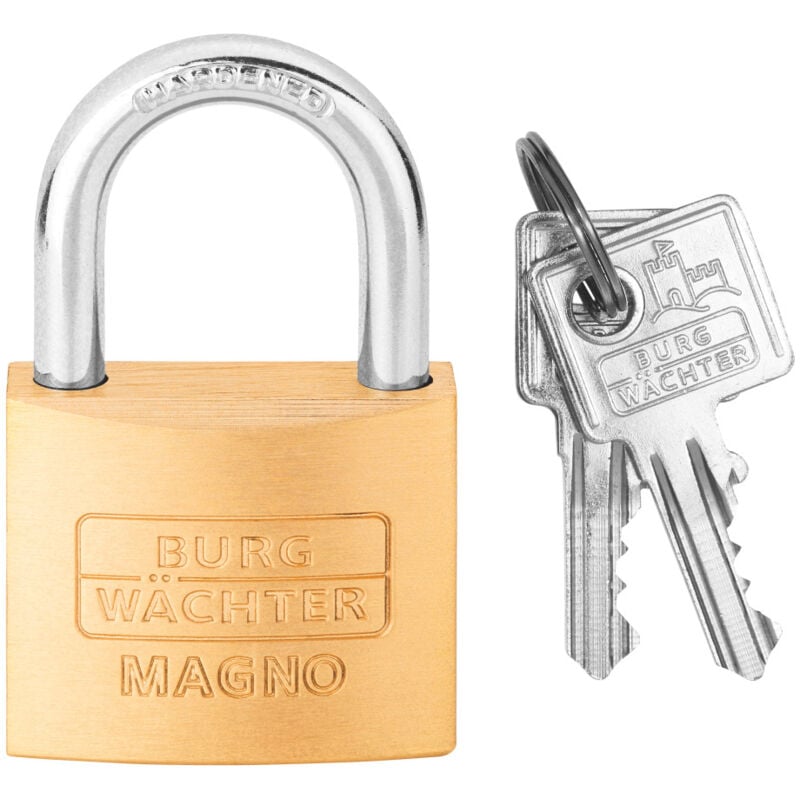 Corpo in ottone massiccio, meccanismo di chiusura di precisione inossidabile, arco temprato e cromato, a doppia chiusura. La serie Magno non è disponibile in esecuzioni speciali. Fornitura: Lucchetto con 2 chiavi. Serie: Magno ⌀ Staffa: 8 mm Altezza interna arco: 29,5 mm