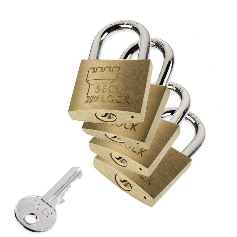 • Serratura a cilindro Set Secu Lock Quadro 405: 4 Blocchi di bloccaggio con corpus completo in ottone completo e staffa cromata • Protezione ad alta lacrazione • Doppia chiusura sicura bloccata di barriere, cancelli, contenitori, gille a rotolo e macchine. Più sicurezza contro l'apertura violenta grazie agli appendiabiti in acciaio. Unità di blocco ad alta tecnologia: fissata contro il tiro, resistenza allo strappo, doppia bloccata. La serratura ha un'unità di blocco di precisione e un interno in acciaio inossidabile.