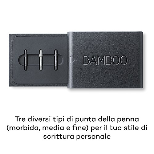 Il pennino touchscreen Bamboo Ink è compatibile con 3 diversi tipi di punta (morbida, media e dura), il design ergonomico e la delicata superficie soft touch rendono la penna confortevole e leggera