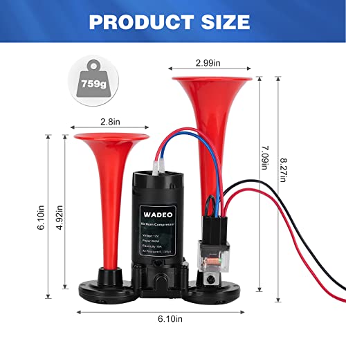 WADEO 150DB Tromba 12V, Super Rumorosa Kit Camion con Compressore, Adatto a qualsiasi veicolo a 12 V, treni, barche, auto, furgoni (Rosso)
