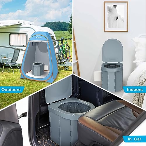 【Sostieni fino a 400 libbre】 Realizzato in plastica ABS di alta qualità e assemblato con 7 pannelli più larghi e più alti, il nostro secchio per WC da campeggio è abbastanza robusto e stabile da contenere fino a 400 libbre, non c'è bisogno di preoccuparsi di cadere a pezzi o rompersi.