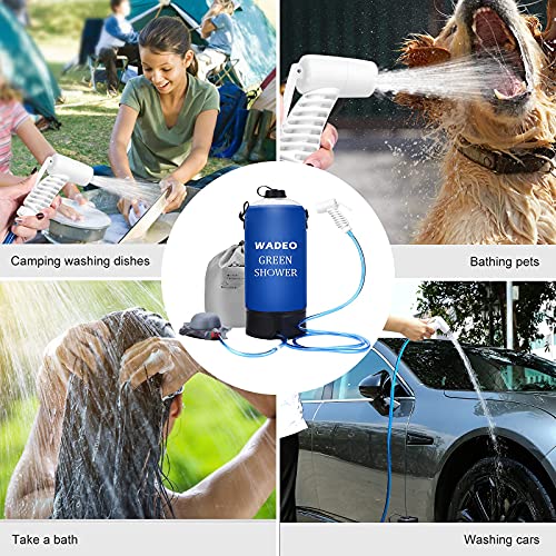 WADEO Docce da Campeggio Borsa da Doccia Camping con Pompa A Pedale E Impugnatura Doccia, Gonfiabile Pieghevole Portatile Doccia Acqua Bagno Esterni Auto, Animali Domestici, Blu