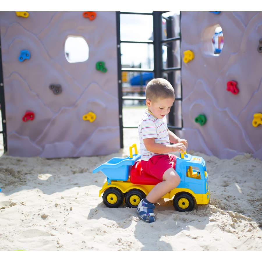 Potete sedervi su questo stabile e colorato camion ribaltabile - e andate via! Grazie alla pratica maniglia della cabina di guida e al sedile antiscivolo, nessuno può cadere. Il contenitore dietro, può essere facilmente ripiegato verso l'alto e verso il basso utilizzando la maniglia,offrendo anche spazio,per altre cose. Dettagli: Dimensioni: 68,5 x 25,7 x 32 cm Materiale: plastica Età: da 12 mesi Attenzione Ci riserviamo il diritto a variazioni di colore e cambiamenti.