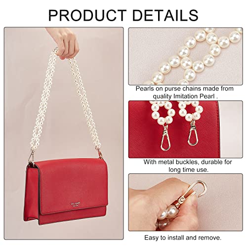 Elegante e alla moda: realizzato con perline in resina imitazione perla, l'aspetto è liscio e lucente, non facile da svanire, può essere abbinato a vari stili di borse e vestiti, perle bianche con fibbia in oro, aggiungi elegante e alla moda alla tua borsa.