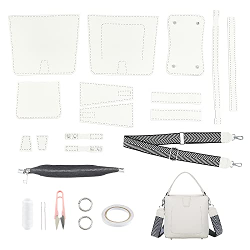 WADORN 23 pz Fai Da Te In Pelle Artigianale Kit per La Creazione di Borse, Borsa A Maglia All'Uncinetto Materiale per Cucire per Borse A Tracolla Tutti Gli Accessori, 79-124x3.7x0.1 cm (Bianco)