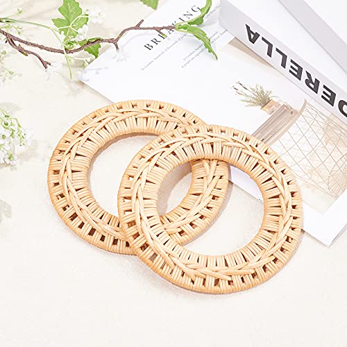 WADORN 2 Pezzi Manico in Legno Intrecciato in Rattan Manico a Forma di Borsa in Legno retrò Borsa Fatta a Mano Fai da Te Borsa in macramè Manico di Ricambio Fatto a Mano Borsa in Canna