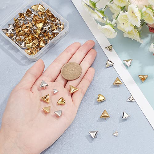 WADORN 120 pz Rivetti con Borchie in Metallo, 6 Stili Spikes Macchie Borchie Triangolo Borchie Piramidali A Forma di Cuore Decorativo Rivetto in Pelle Nailhead Rivetti per Abiti Artigianali in Pelle