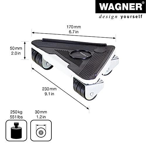 WAGNER Set da 4 ausili per il trasporto MM 1191 I 17 x 17 x 23 cm I area di carico antiscivolo - per il trasporto di merci voluminose I portata 250 kg I molto forte I carico sterzante - 20119104