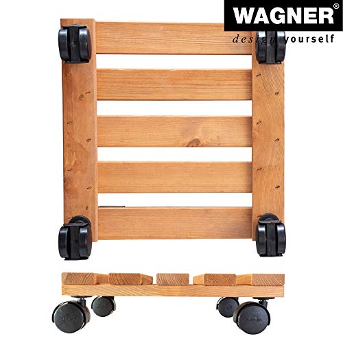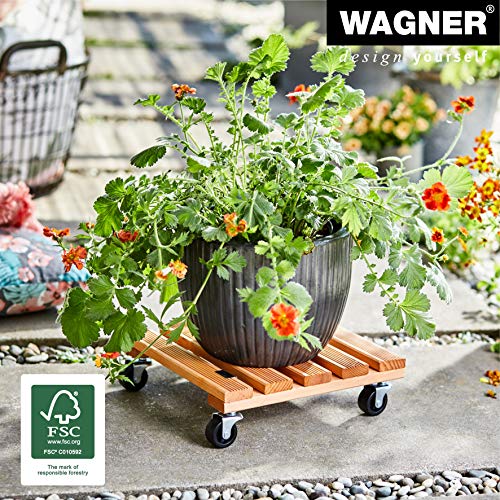 Wagner Carrello per Piante Nature 29 x 29 x 8 cm I per Interni I Carrello per Fiori in Legno Die conifere massello FSC®, Terracotta I Portavasocon Ruote I Portata 100 kg I Fatto in UE - 20015201