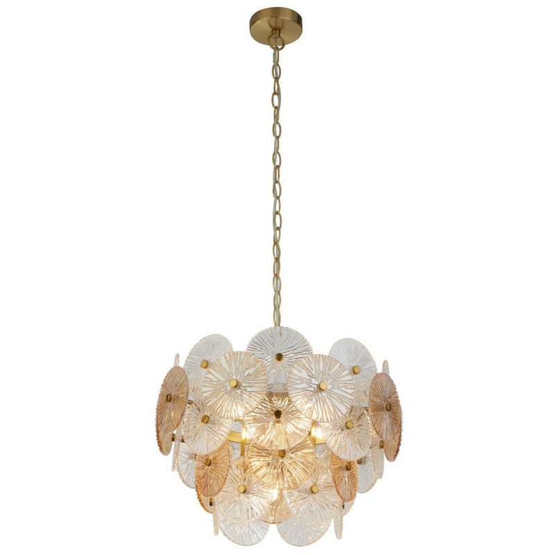 Searchlight Wagon Wheel Lampadario a 5 luci in vetro color bronzo ambrato | Finitura: Bronzo | Materiale: acciaio dolce e vetro | Grado di protezione IP: IP20 | Altezza: 32 cm | Altezza massima: 120 cm | Lunghezza: 45 cm | Larghezza: 45 cm | Tipo di lampada: G9 | Numero di lampade: 5 | Lampadina inclusa: no | Dimmerabile: sì - è necessaria una lampadina dimmerabile | Peso: 7,46 kg | Potenza (massima): 33 W