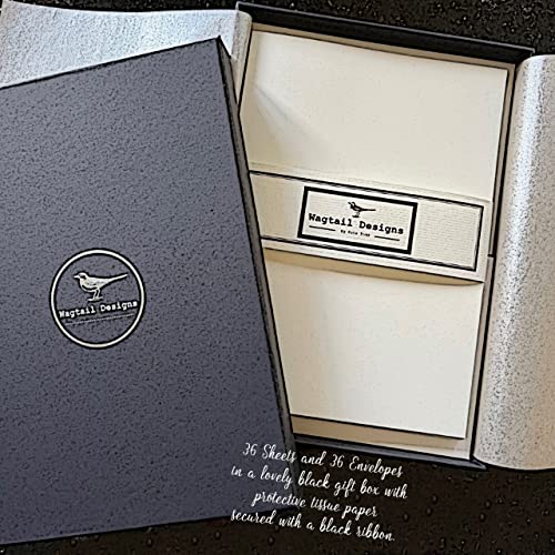 Wagtail Designs - Set di carta da lettere in tinta unita, color avorio (crema), con nastro (36 fogli di carta da scrittura di qualità con buste abbinate)