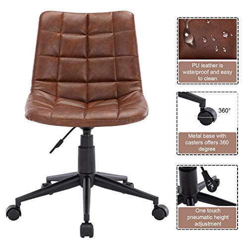 Wahson Sedia da Scrivania Girevole in Pelle Sedia da Ufficio Altezza Regolabile,Sedia da Computer con Rotelle per Casa/Ufficio,Marrone