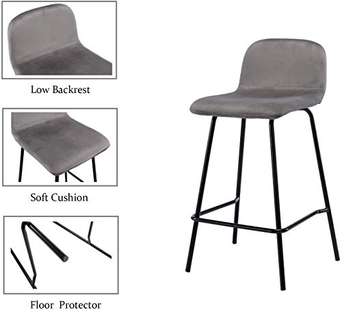 Wahson 4X Sgabelli da Bar in Velluto Sgabelli Cucina Moderni Sgabelli Alti con Schienale, Sedia da Bar per la Casa (Grigio)
