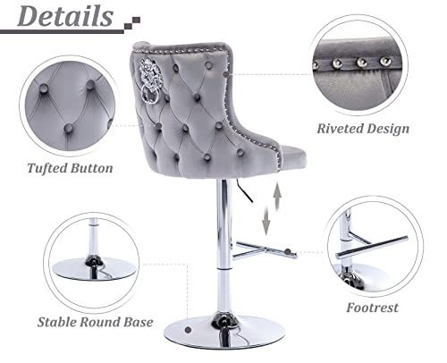 Wahson Set di 2 Sgabelli da Bar in Velluto Sgabelli Cucina Moderni Sgabelli Alti con Schienale, Sedie da Bar Regolabile e Girevole (Grigio)
