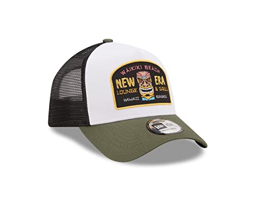 New Era Waikiki Beach Location Icon White Olive A-Frame Adjustable Trucker Cap - One-Size