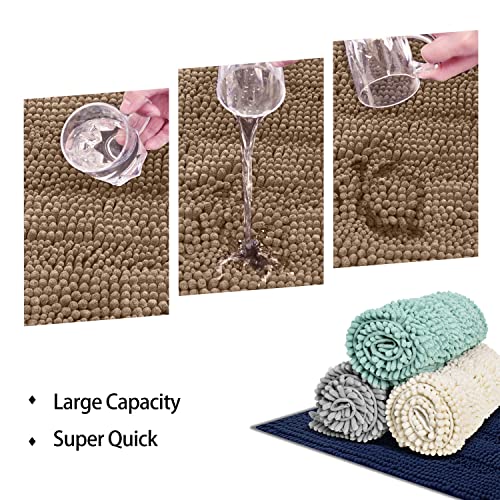 WAITER TREE Tappetini da Bagno in Microfibra di Chenilla Tappetini per WC Antiscivolo (50x50cm+50x80cm, Marrone - Extra Spessa)